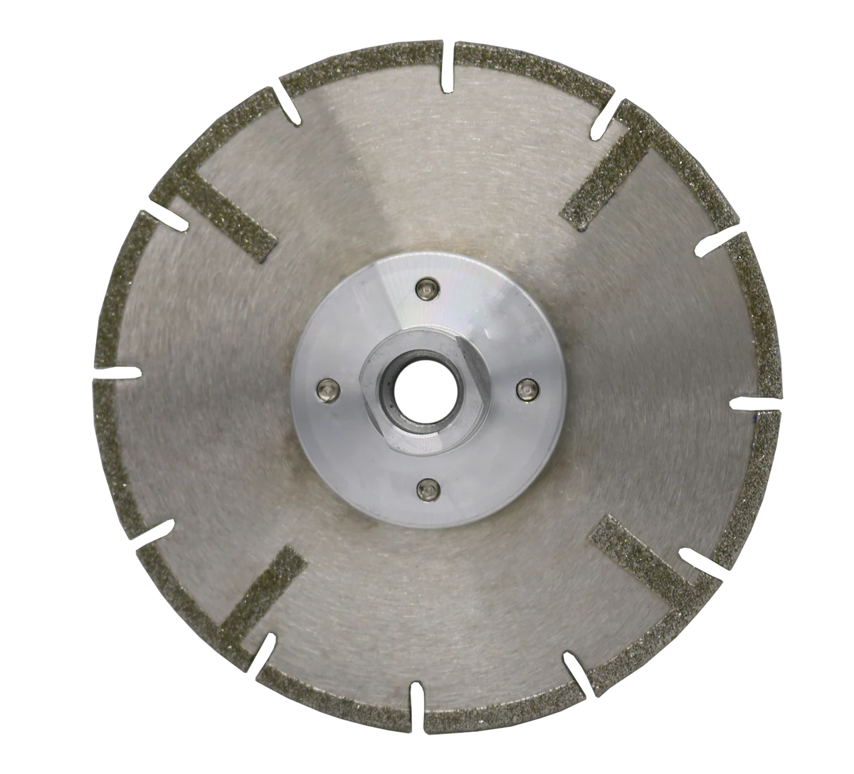 Segmented Electroplated Diamond Vanity Blade with M14 Flange, specifically designed for precision cutting in marble and limestone. Key Features: Electroplated