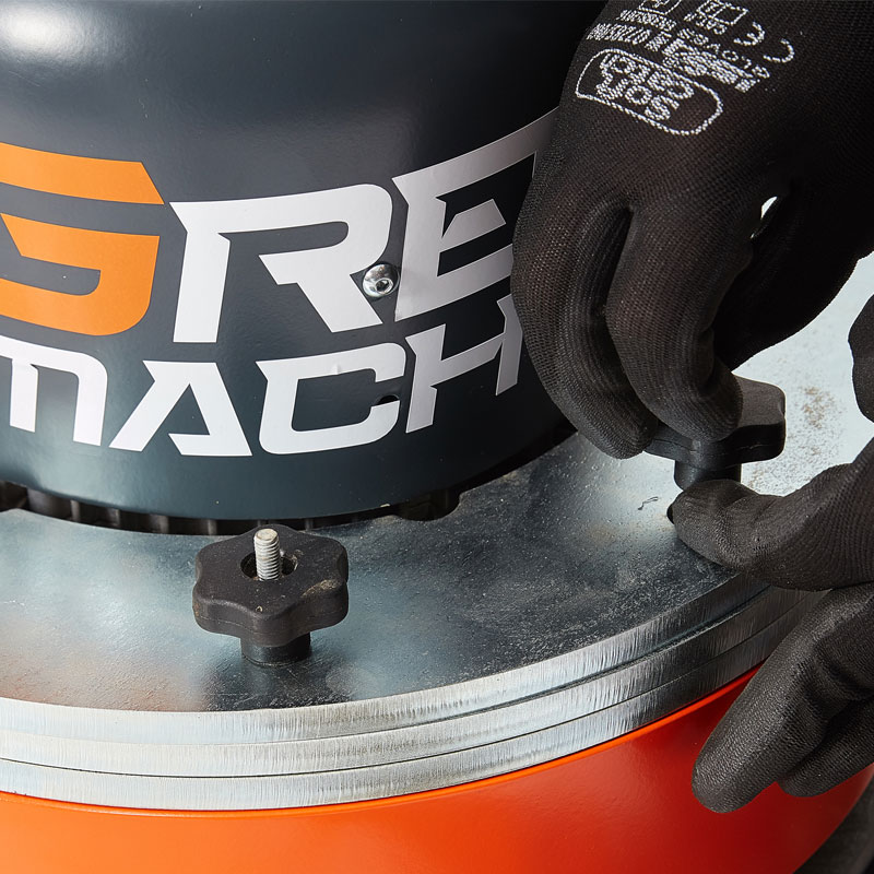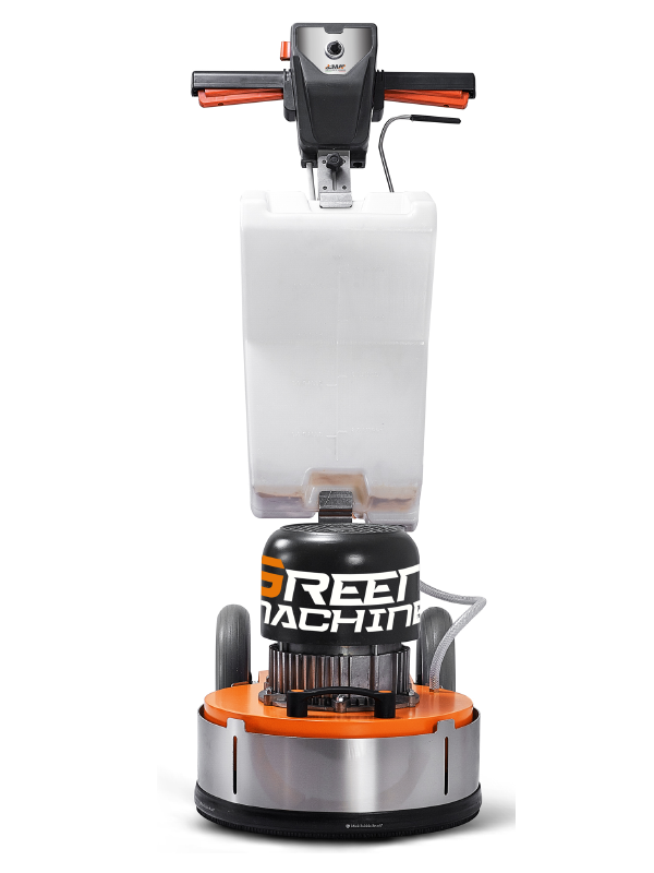 What’s Included: Variable Speed Green Machine with Planetary Gear Plate Ø1400mm AP, 20lt tank, metallic adjustable splash guard.
