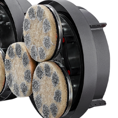 TRAXOPAD discs offer a range of advantages over traditional pads, thanks to a special formula developed in the LMA Machine laboratories. These pads are ideal for restoring floors made of marble, terrazzo, concrete, and natural stone. They are not only easy to use but also eco-friendly, delivering mirror-like polishing and high shine without the need for chemicals or waxes.